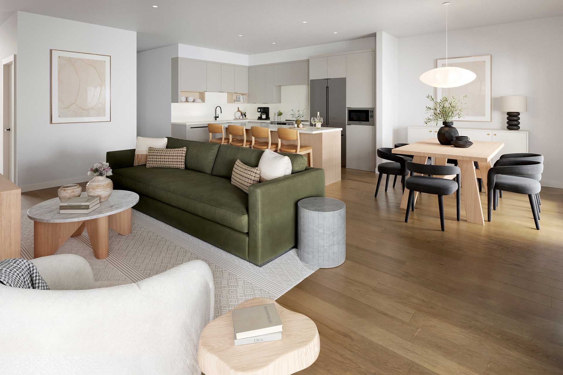 Ossa North offers our most stunning views yet, with sweeping vistas over Finch Drive. Experience elevated living and exceptional quality in these thoughtfully designed one, two, and three-bedroom condos ranging from 715 to 1,376 square feet.